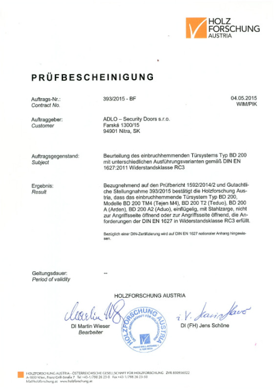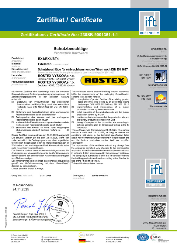 RX-Türbeschläge, ES3-Klassifizierung, BT4-Sicherheit